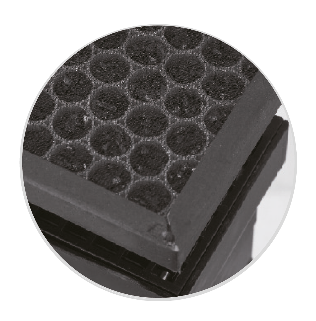 The Bamboo Carbon Filter is able to absorb airborne gases thereby filtering them out of the air. In addition, the bamboo carbon vitalises the air. The Basic Filter removes large dust particles and pollutants from the air and optimises the functionality of the secondary filter.