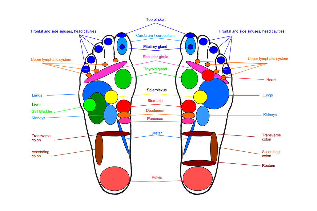 "The foot is a microcosm of the human body; all of the organs, and the glands, muscles, nerves, veins, arteries and bones, have their corresponding reflex areas in the foot, which can restore or improve the corresponding parts of the body by acting on them."