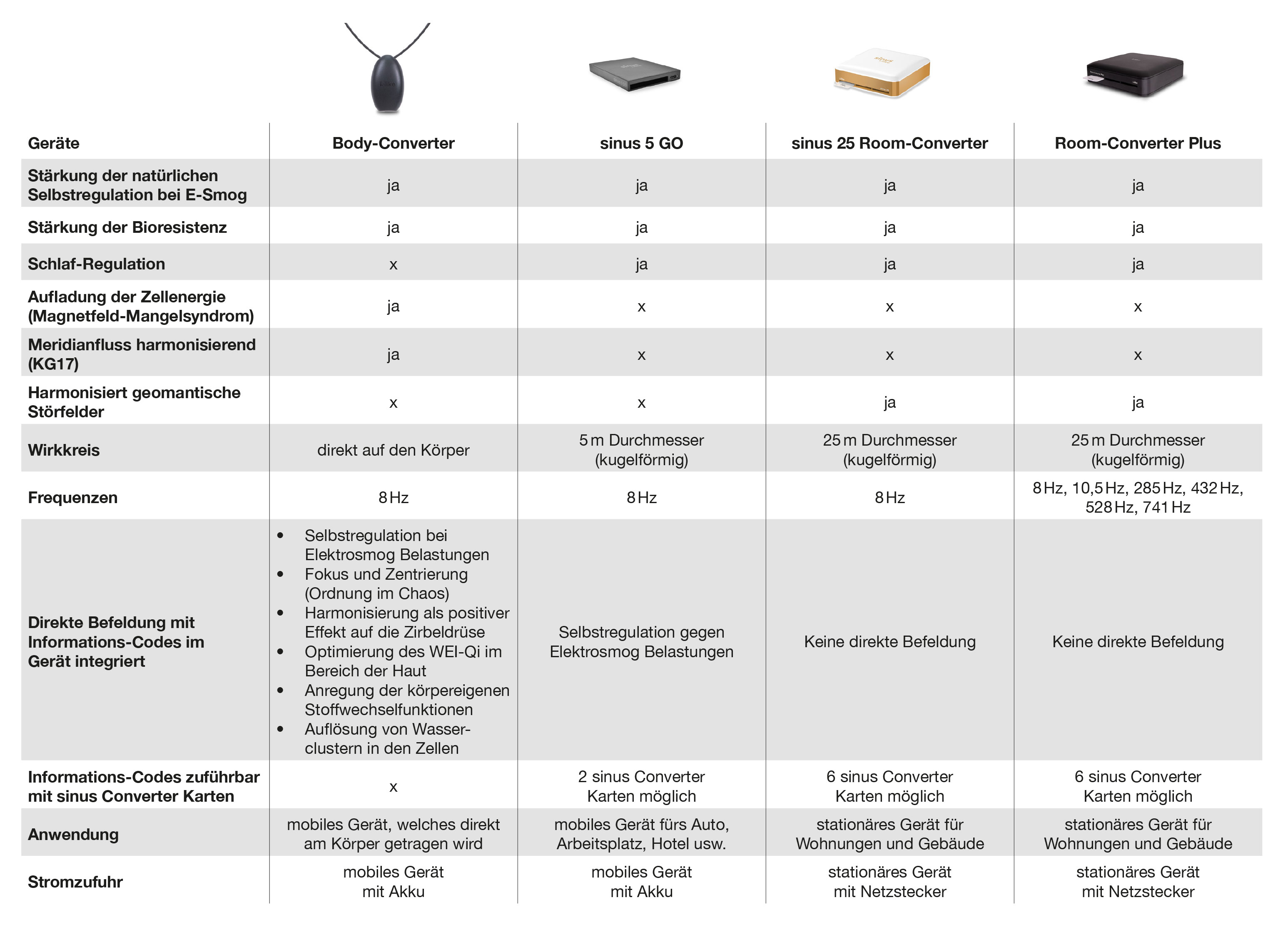 Jeder Room-Converter Plus wird inklusive einem sinus Converter e-smog geliefert. Durch eigens entwickelte Informations-Codes und Nutzung von moderner Quantenphysik (Skalare) entsteht ein Resonanzfeld, um die körpereigene Bio-Resistenz zu fördern. Somit schaffen wir eine Wohlfühlatmosphäre für den Körper, damit er gewappnet ist, den immer heftiger werdenden Einflüssen von Elektrosmog zu trotzen.